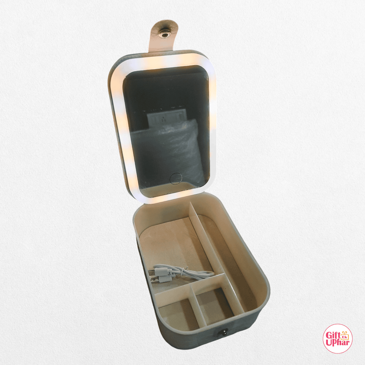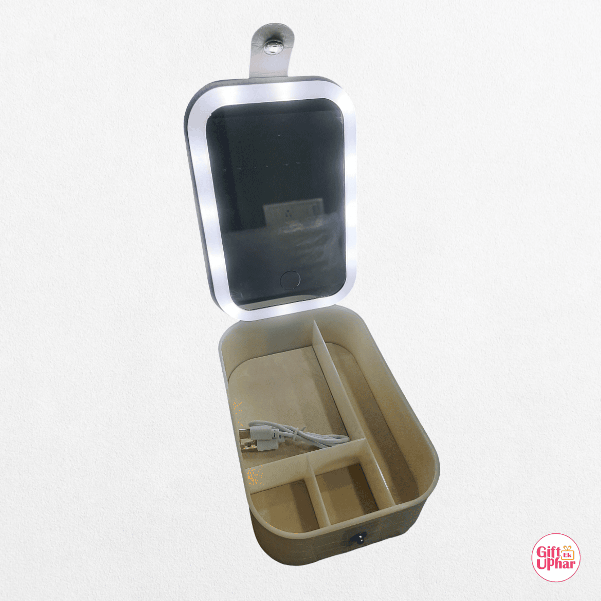 This isn’t just a mirror — it’s a complete vanity tool. The base doubles as a storage box with compartments for lipsticks, brushes, palettes, and other beauty essentials. Keep everything organized and within reach while you glam up.